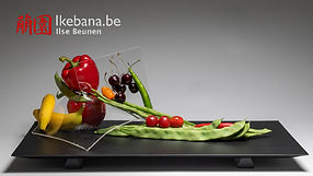 Ikebana with Fruits and Vegetables / Abstract with Vegetables in a Moribana